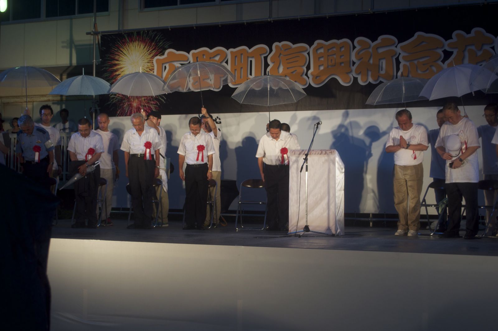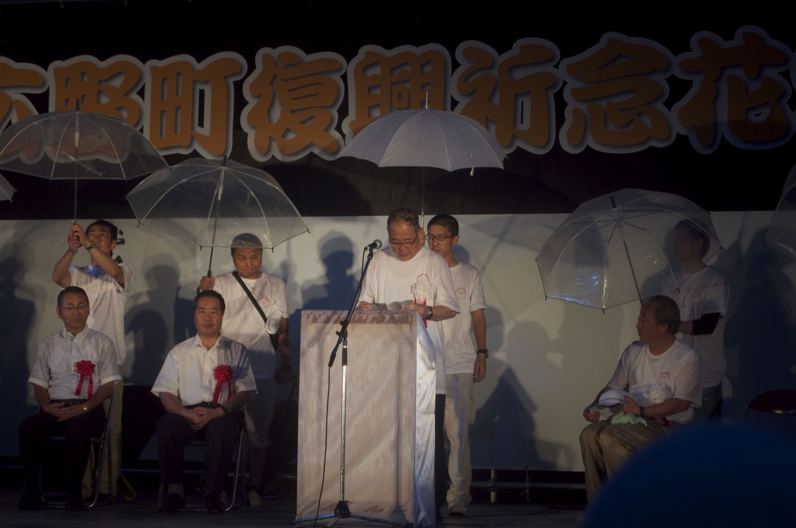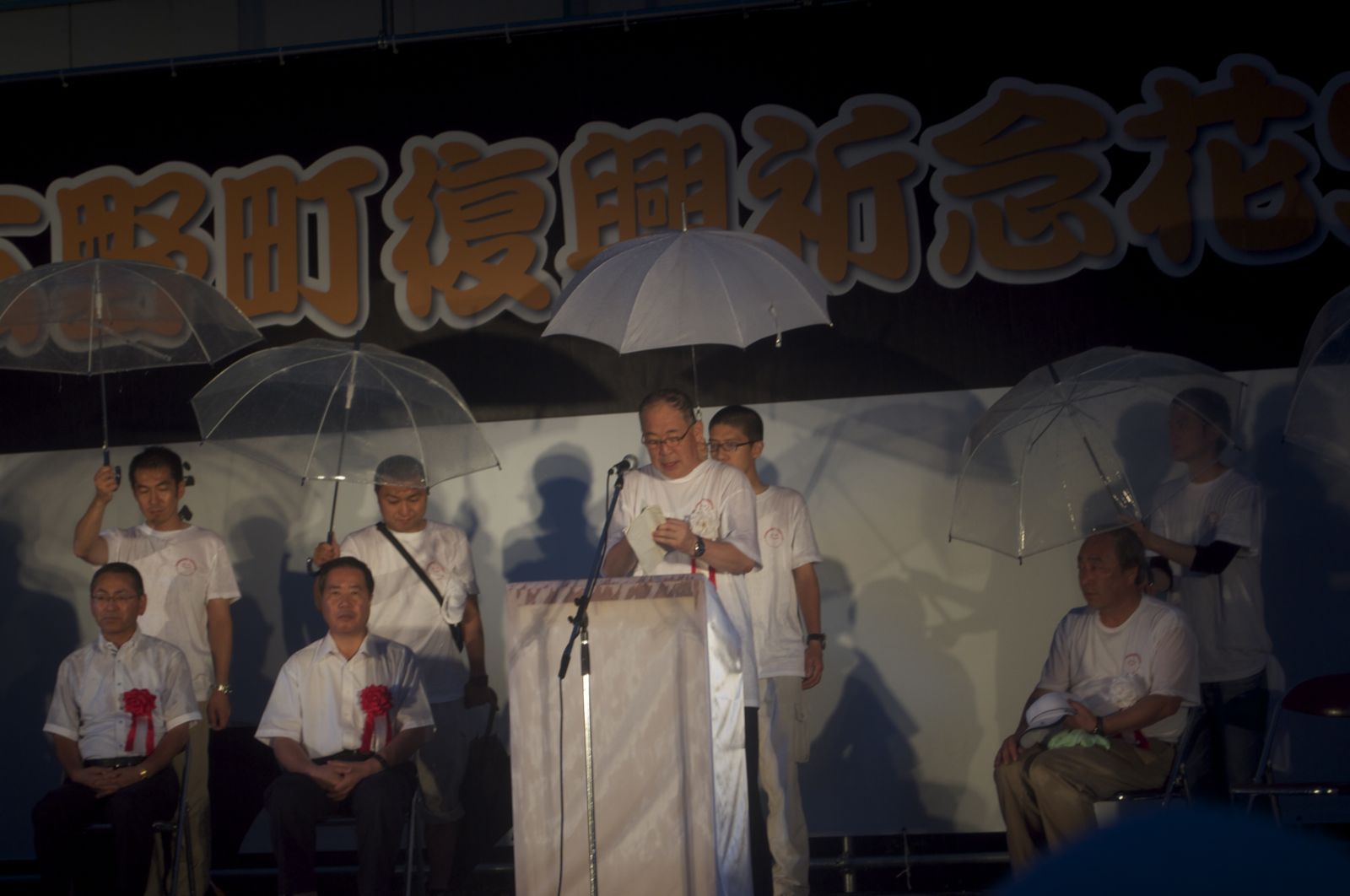 花火大会実行委員長の挨拶が終わり、広野町長の挨拶が始まった。