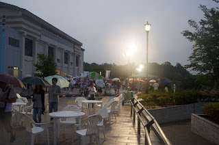 雨で花火が中止になることはなかった。